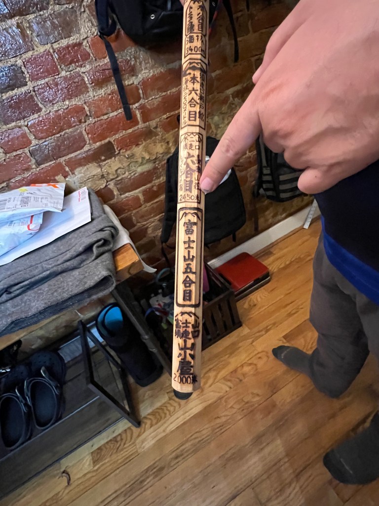 The next few shots are from Richmond. Zach and his partner Megan are expert hikers and mountain climbers. The bamboo stick shows woodburned marks you get for every thousand feet you succeed in ascending Mount Fuji. When you get to the top, you get the last one – see closeup. Both Megan and Zach have succeeded in summiting Mount Fuji!
