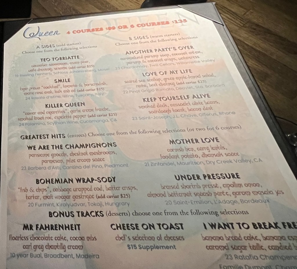 First up – at La Boheme/Apero restaurant in Georgetown they have themed menus and decor. We enjoyed a Queen (Freddy Mercury rock band) inspired menu.