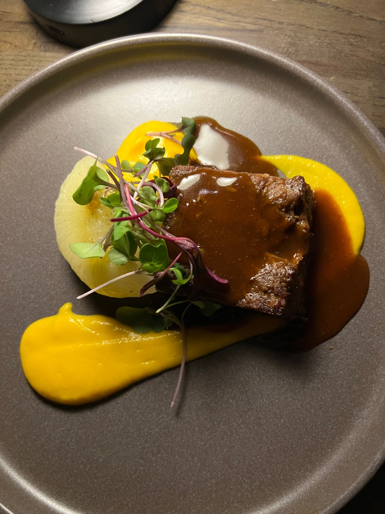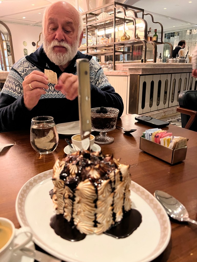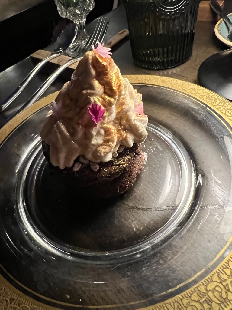 Baked Alaska – and yes, the knife is supposed to be sticking straight down. The three of us shared it!