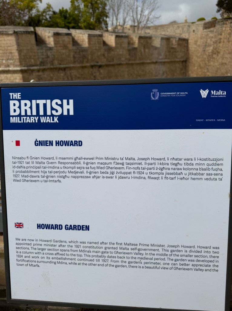 Before entering the main gate, we enjoyed Howard Garden, named in honor of Joseph Howard, the first Maltese prime minister.